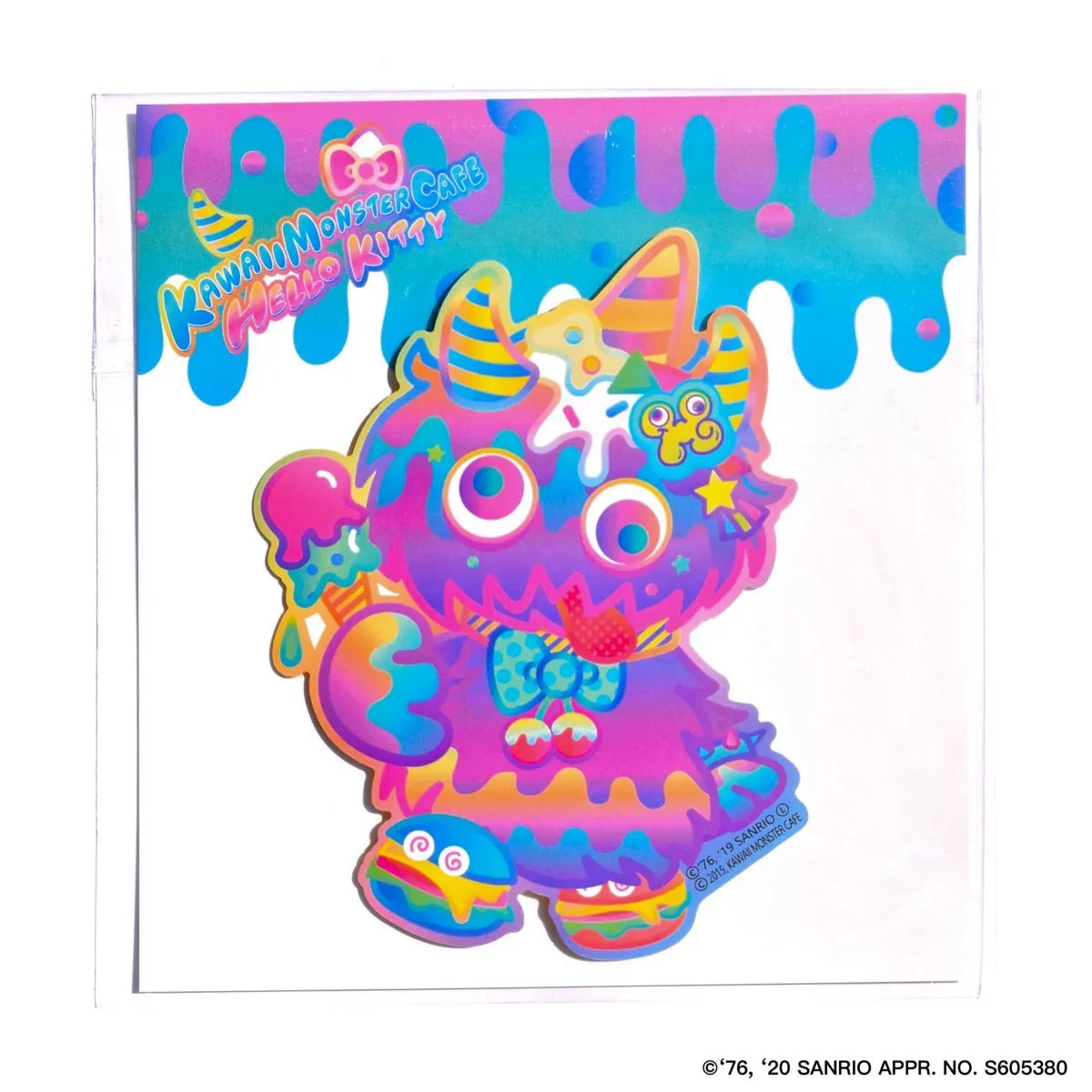 Kawaii Monster Cafe and Hello Kitty collaboration sticker featuring the Kawaii Monster Cafe's mascot "Choppy".
