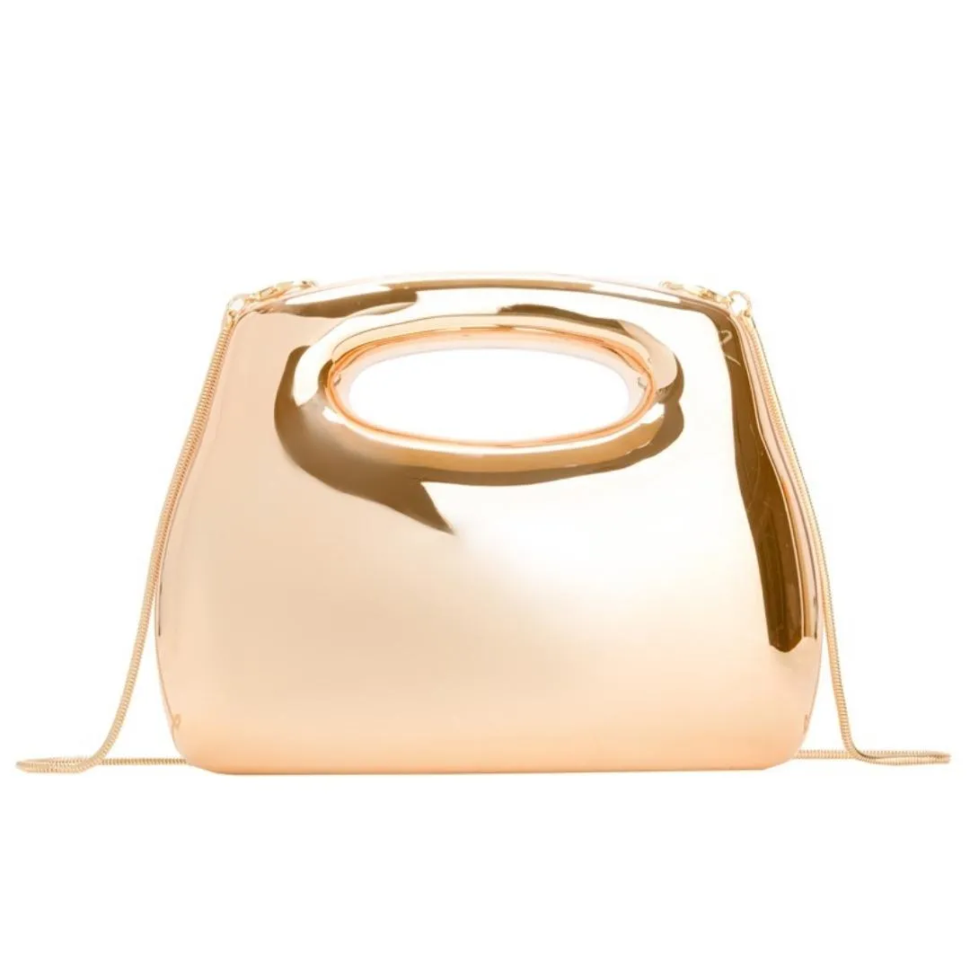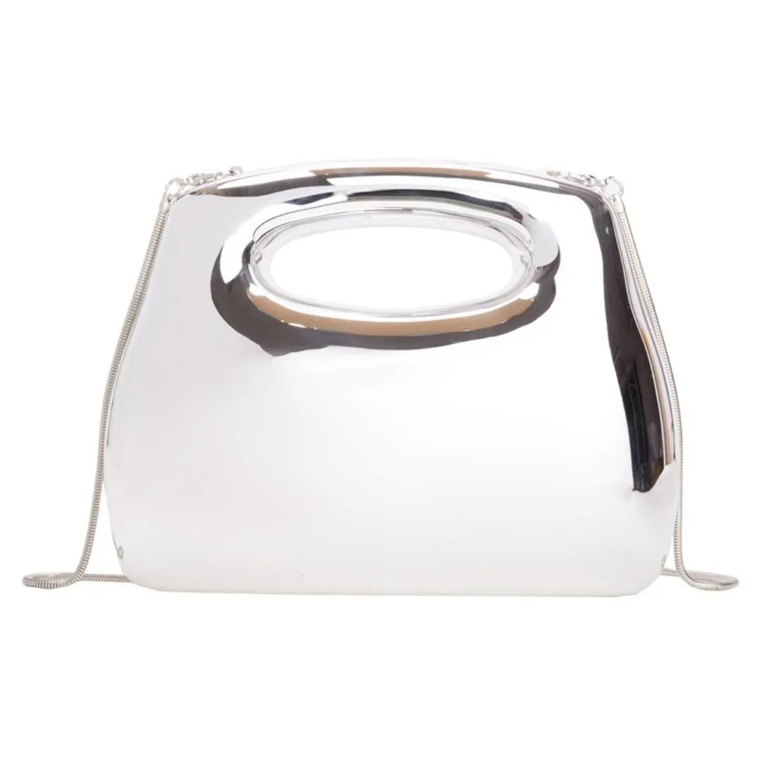 With its versatile design, this bag can be worn as a clutch or carried as a wristlet, and also features a detachable metal chain, making it easy to convert into a crossbody bag.