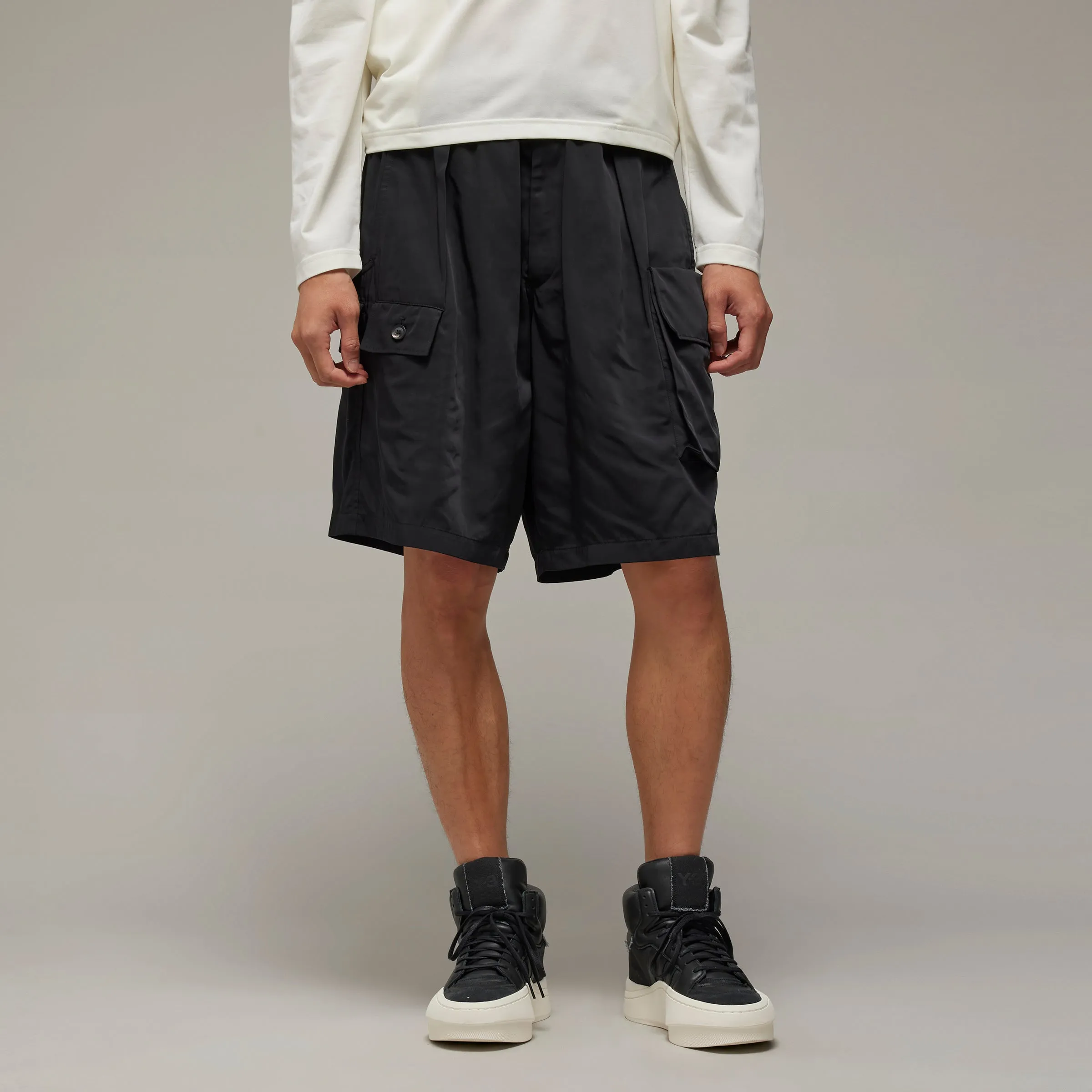 Statement pockets all around disrupt the smooth build of the Y-3 Nylon Twill Shorts. An integrated snap-buckle belt hints at utility-inspired fashion. The Y-3 logo sits quietly on one pocket.