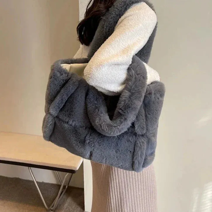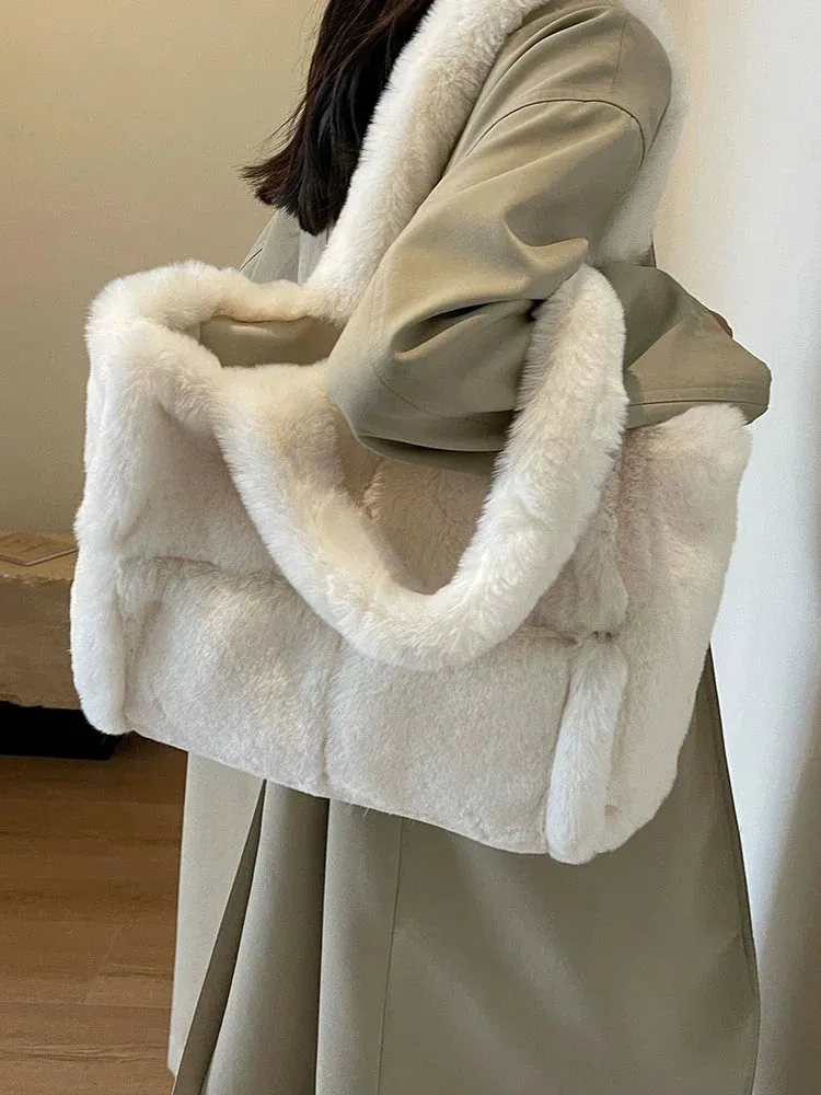 "Get cozy and stylish with the Arden Faux Fur Plush Bag from LaPose Clean Girl Collection. This lazy-style tote bag features soft teddy lamb fur to keep you warm while adding a touch of fun to your outfit. With a large capacity, it's perfect for all your essentials. Available in a variety of colors. Perfect for those who don't take themselves too seriously!"
