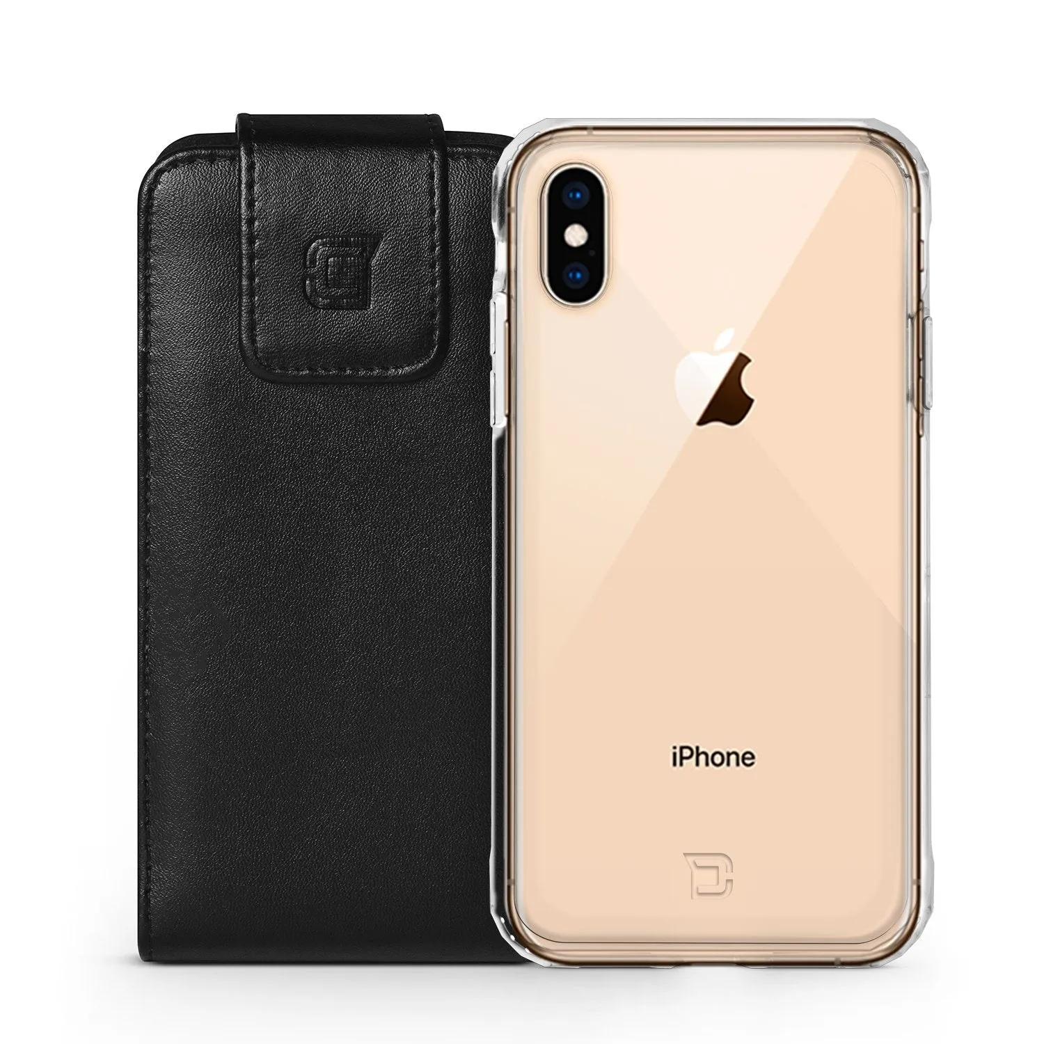 iPhone X / XS Vertical Phone Belt Holster Pouch Case is a vegan leather wallet folio case that is durable and easy to use. It allows you to carry your phone on your belt effortlessly.