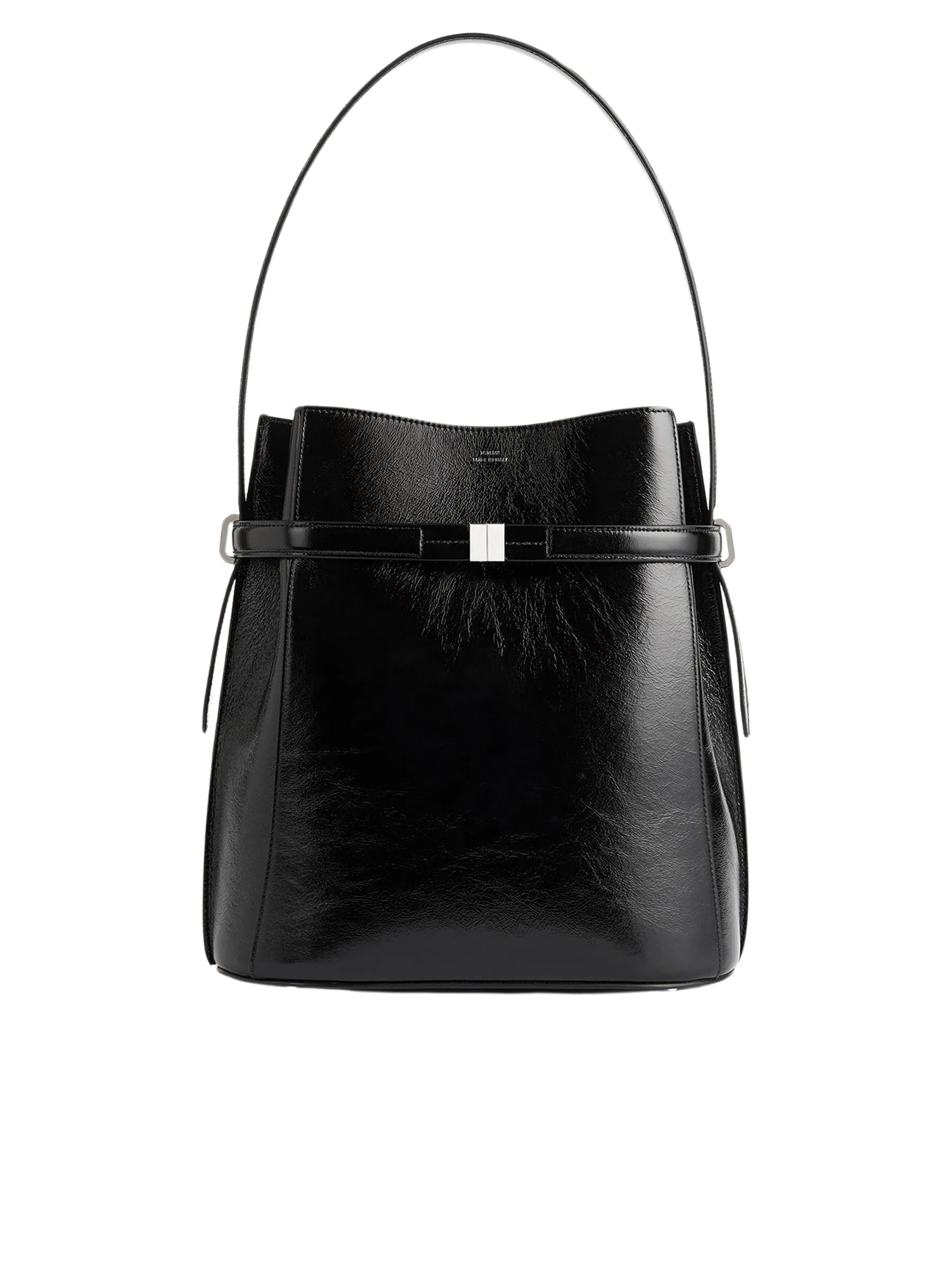 A refined take on the classic bucket bag, The Belted Naplack Bucket Bag by TOTEME is made from high-quality Naplack leather, known for its subtle shine and smooth texture. The minimalist design is accented by a distinctive belted strap, adding a modern twist to its timeless shape. Spacious yet compact, this bag offers ample room for your essentials, while the structured form maintains its integrity throughout the day.