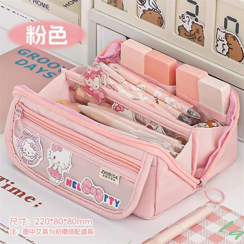 Large Capacity Pencil Case Box Transparent Kawaii Bag Standing Stationery Organizer Estuches Asthetic Korean Pouch Kalemlik Girl
