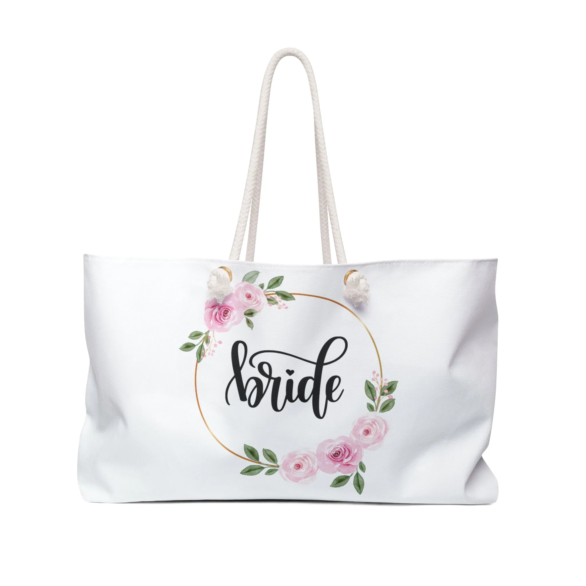 Our Bridal Oversized Weekender Wedding Tote Bag is perfect for your wedding, bachelorette getaway weekend, or honeymoon. The wide-mouthed, durable bag holds a generous amount of personal items and is easily held by its thick rope handles.