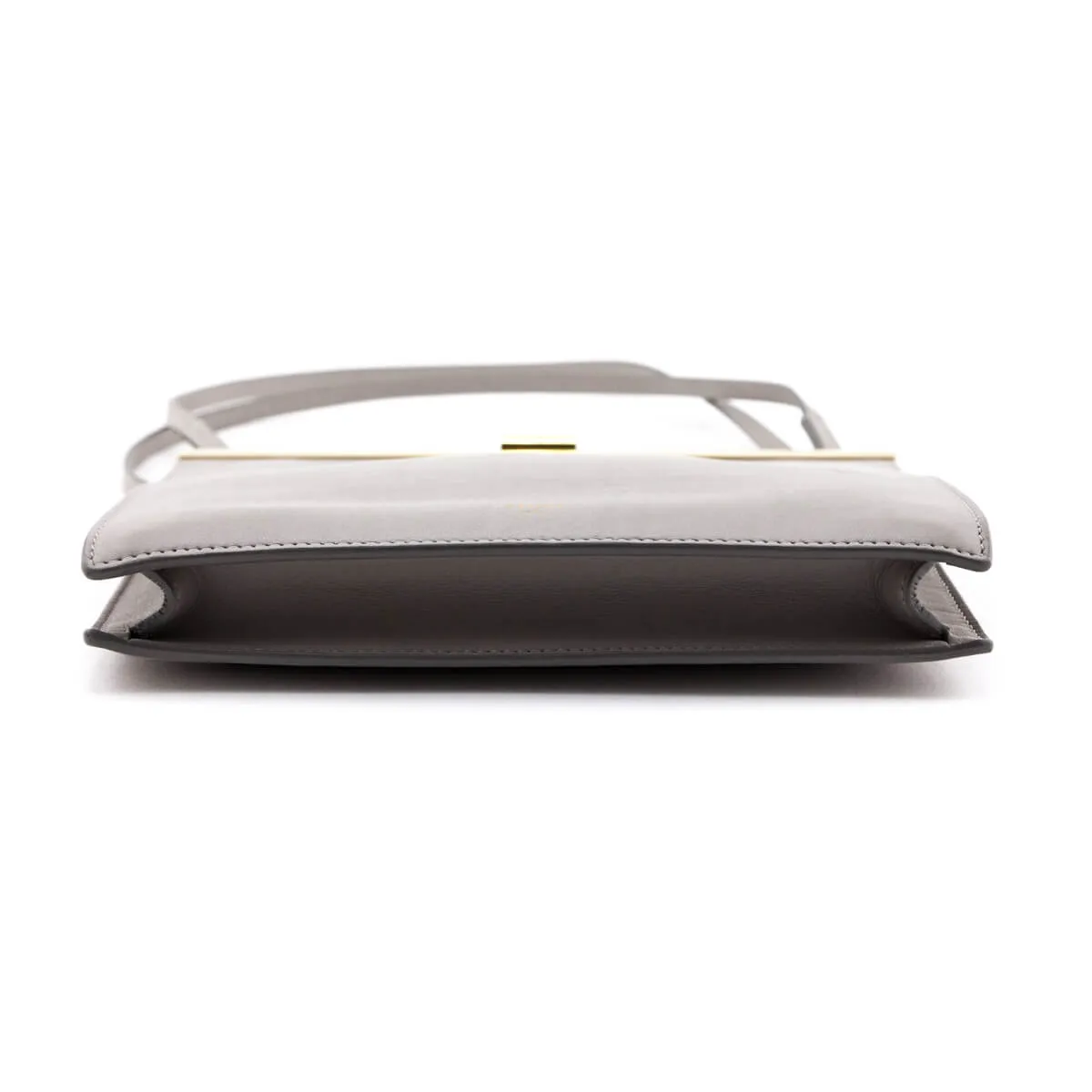 A minimalist pick to elevate your eveningwear, this authentic preloved Celine Gray Smooth Calfskin Mini Clasp Bag is an effortless addition to any collection! The smooth light gray calfskin squared exterior completes in an aged gold-tone frame lock closure at the top for a sleek and simple silhouette. A slender flat matching leather crossbody strap allows for a hands-free wear, perfect for your next cocktail party! Inside of this compact design, a dark gray smooth leather interior offers open storage, and three card slots. Upgrade your collection today with the clean lines and neutral palette of this authentic Celine Gray Smooth Calfskin Mini Clasp Bag.