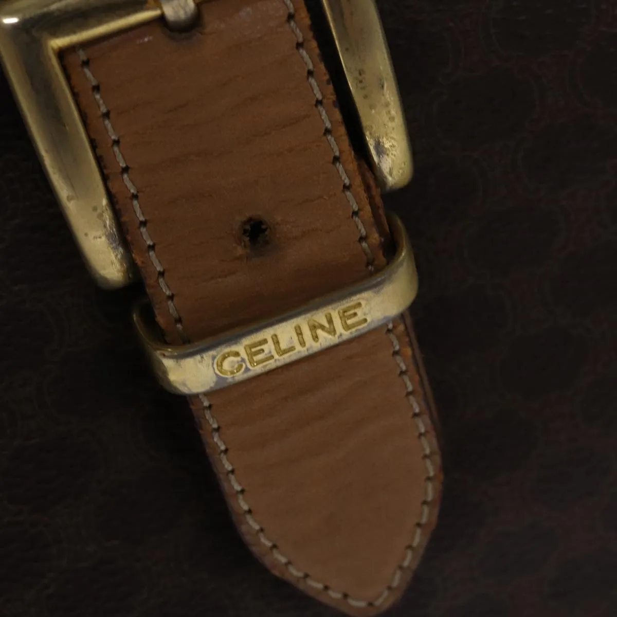 CELINE Macadam Canvas Boston Bag PVC Leather Brown Auth fm3560
