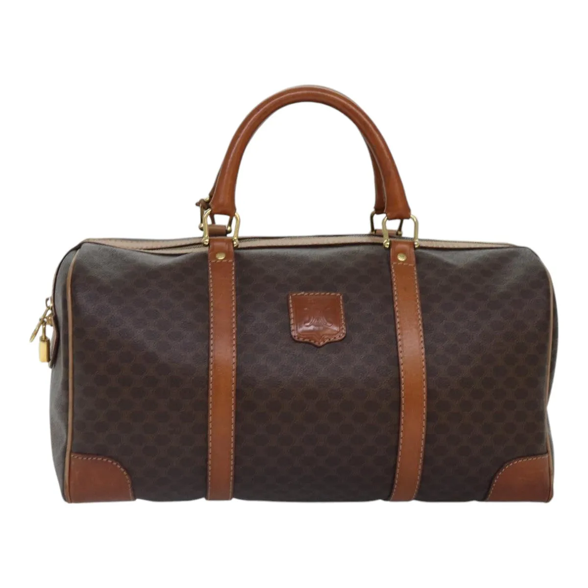 CELINE Macadam Canvas Boston Bag PVC Leather Brown Gold Auth ki4891
