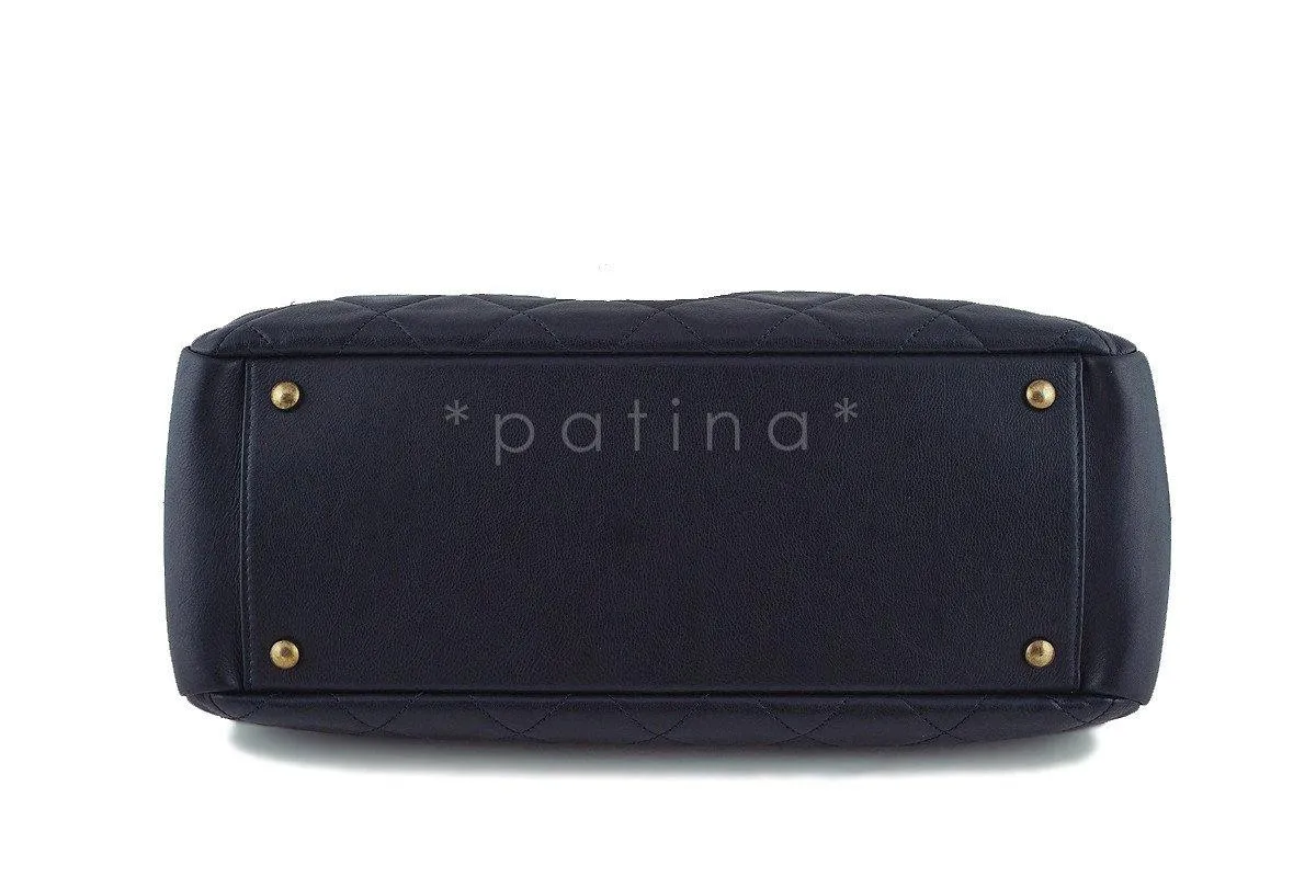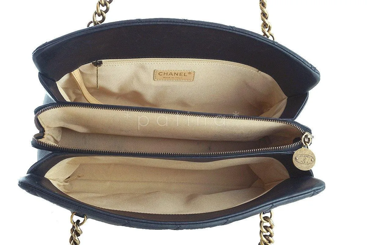 "CC" logo in Aged Gold on front. Also like the GST, three main compartments, two open and one middle main compartment with zipper, a substantial weighty Chanel "coin" charm.