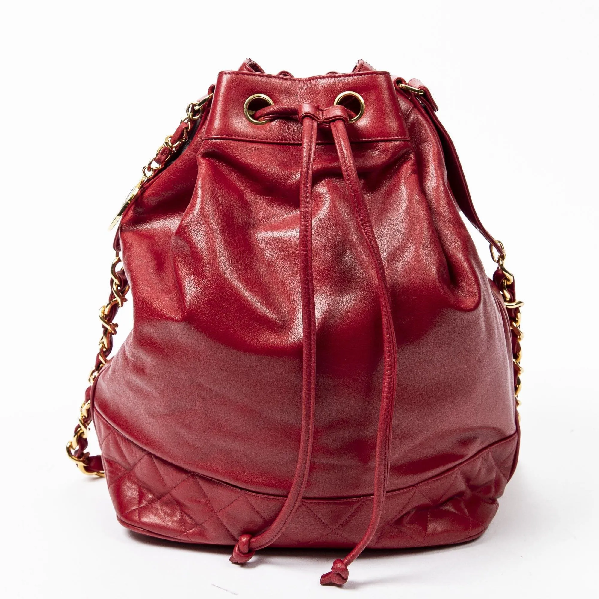 Item: Chanel Vintage Red Lambskin Duffel Bag