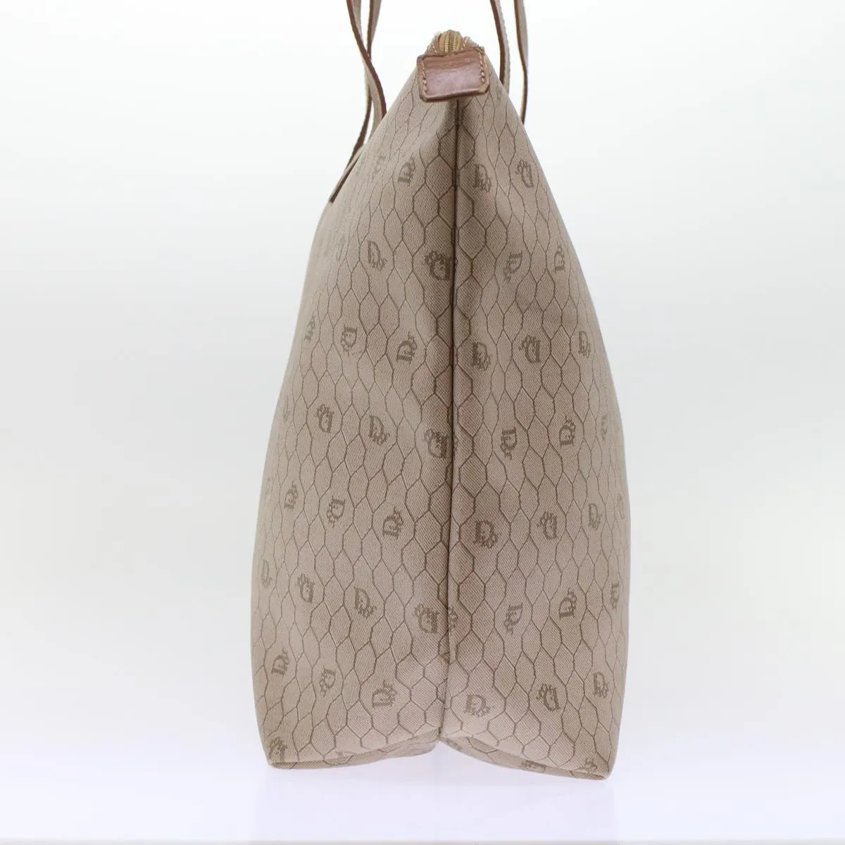 CHRISTIAN DIOR Honeycomb Canvas Tote Bag PVC Leather Beige Brown ar9982