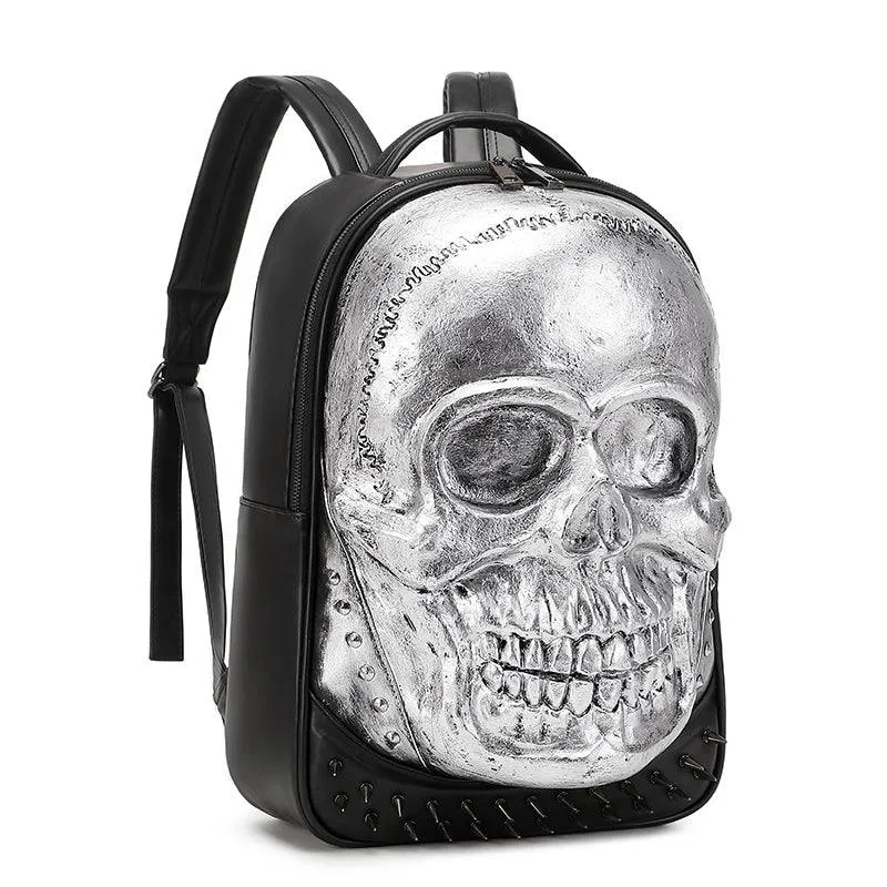 This backpack is built with water-resistant PU leather material . 3D big skull design silcone cartoon sculpture at front. Fashion and trendy to carry as handle bag and single-shoulder bag. This large volume backpack consists of 1 padded interior organizer- laptop compartment, that fits 15.6" laptops.