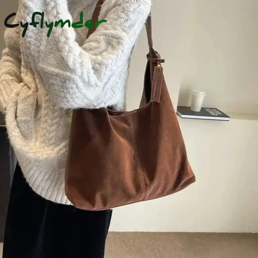 Y2K Korean Vintage Brown Suede Bag Harajuku Aesthetic Purse Emo Hobo Handbags Shoulder Crossbody Messenger Large Tote Bags Women