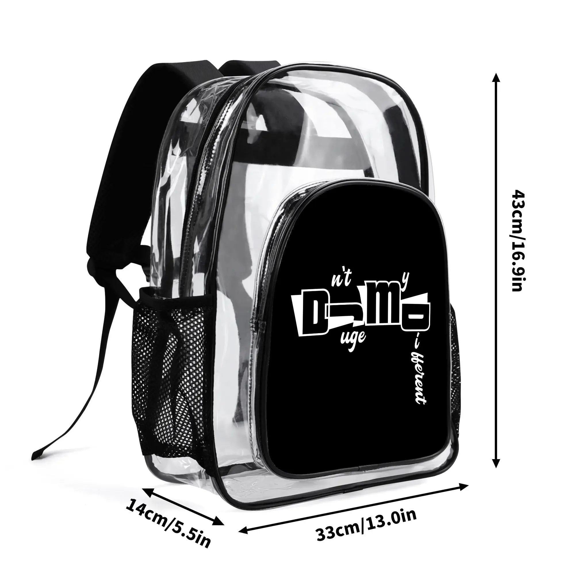 * Transparent : The transparent bag is ideal for universities, airports and concerts, it can help you pass through security quickly and conveniently check everything you need to prepare. The thickened PVC material is safe and environmentally friendly, and you can easily clean the backpack with a damp cloth.