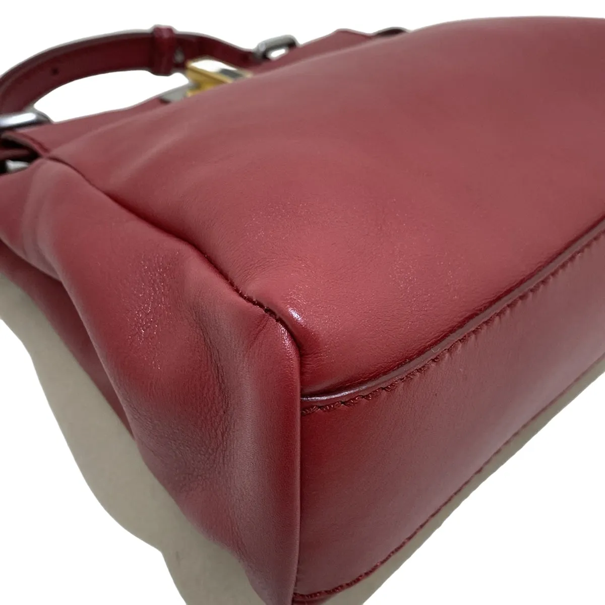 Experience luxury at its finest with the Fendi Red Peekaboo Small Bag. This small-sized bag features the iconic Peekaboo model, adorned with golden hardware and a stunning red color. Its overall good condition guarantees durability and style. No packaging included. Elevate your look with this must-have accessory.
