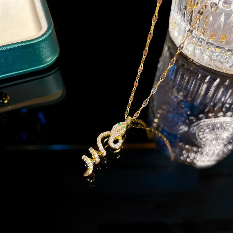 585 Gold Jewelry-316L Stainless Steel Gold Plated Snake Shaped Pendant Necklace For Women Fashion Exquisite Micro-Set Zircon Clavicle Chain