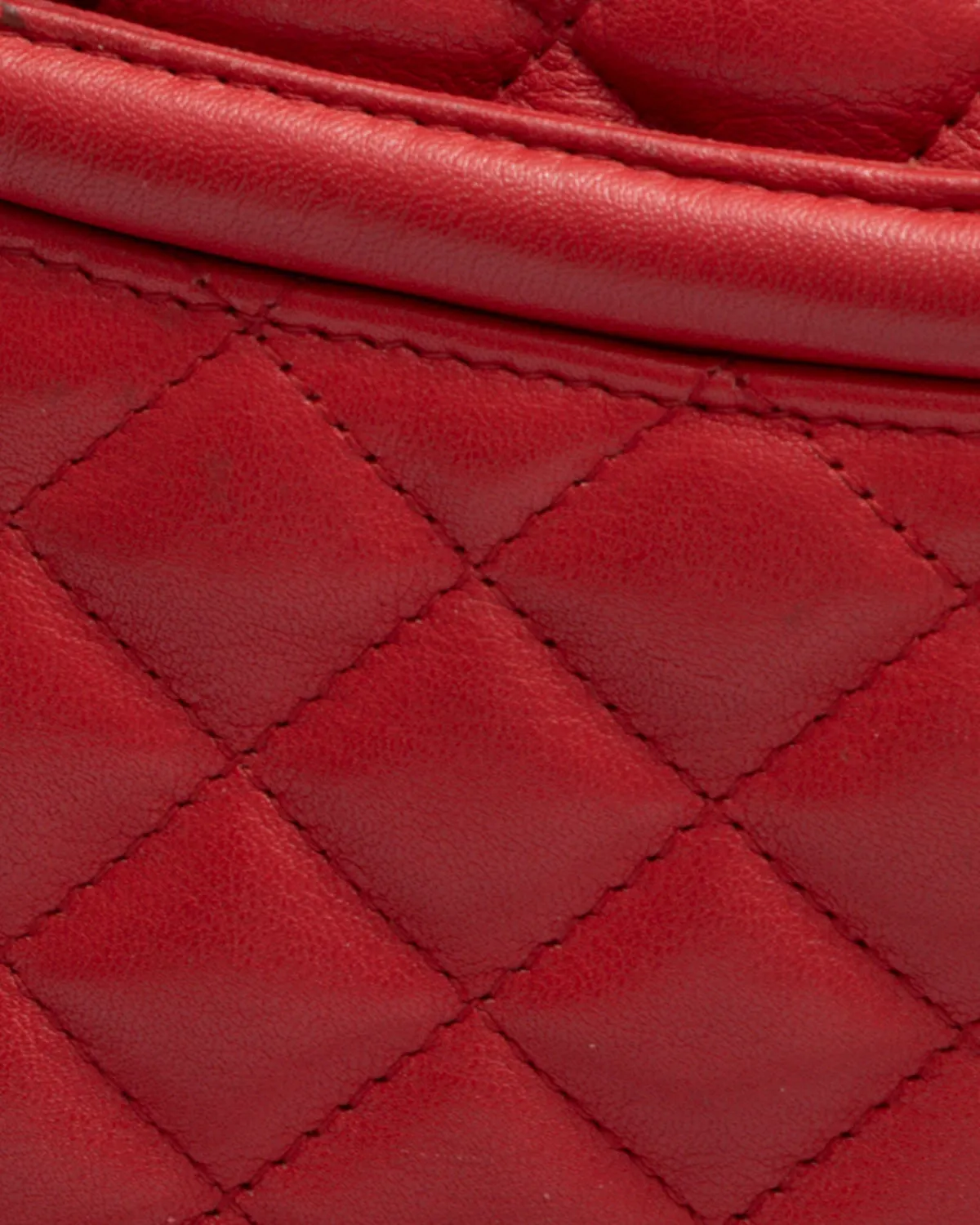Stunning red leather Chanel-style quilted bag. The main zip compartment features a stylish red tassle on a gold chain. There are multiple pockets and an elegant thin chain rope intertwined with red leather.