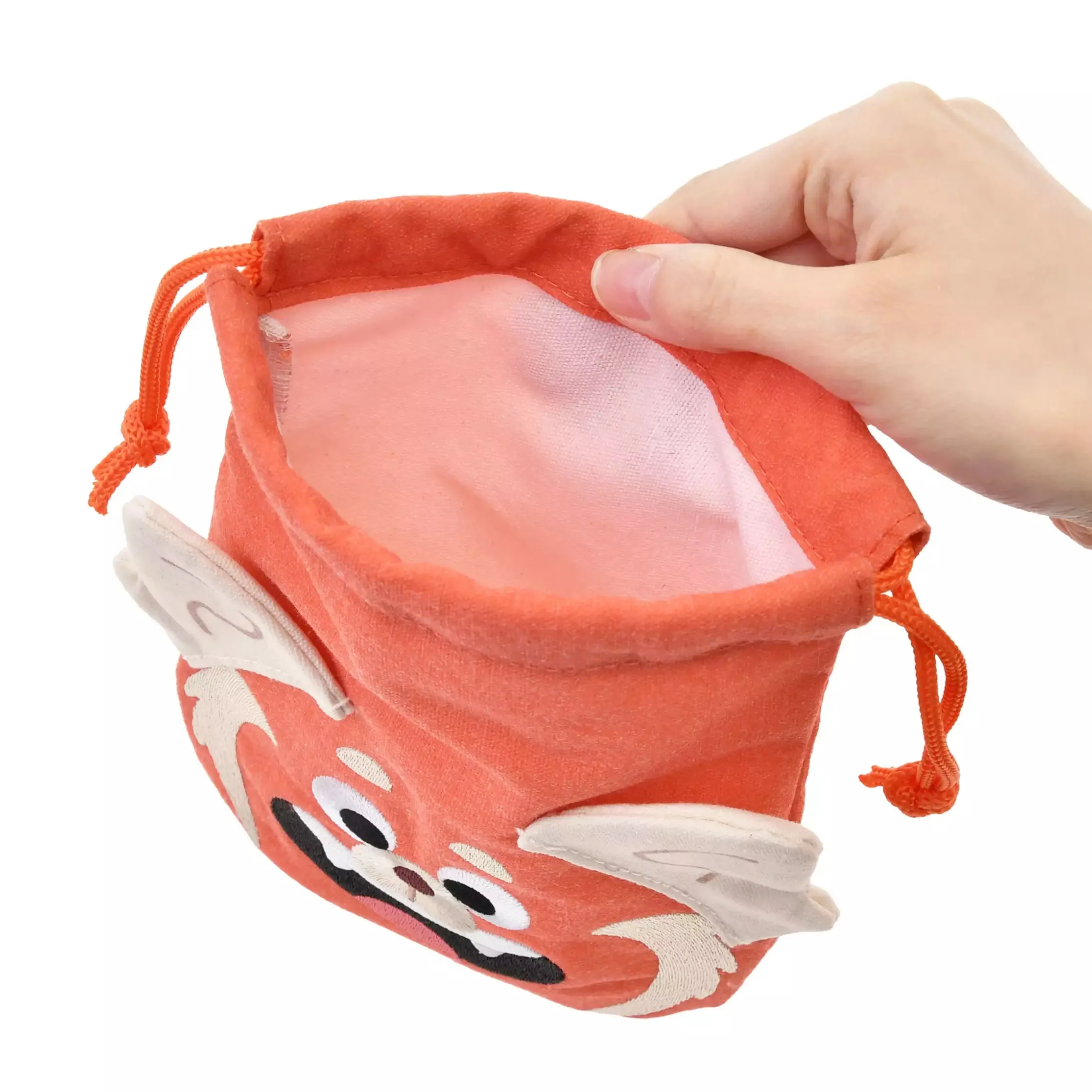A cute drawstring bag with the face design of the lesser panda Mei.