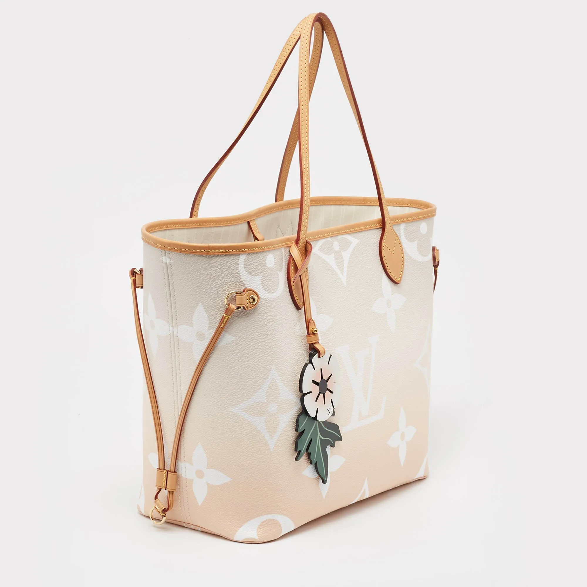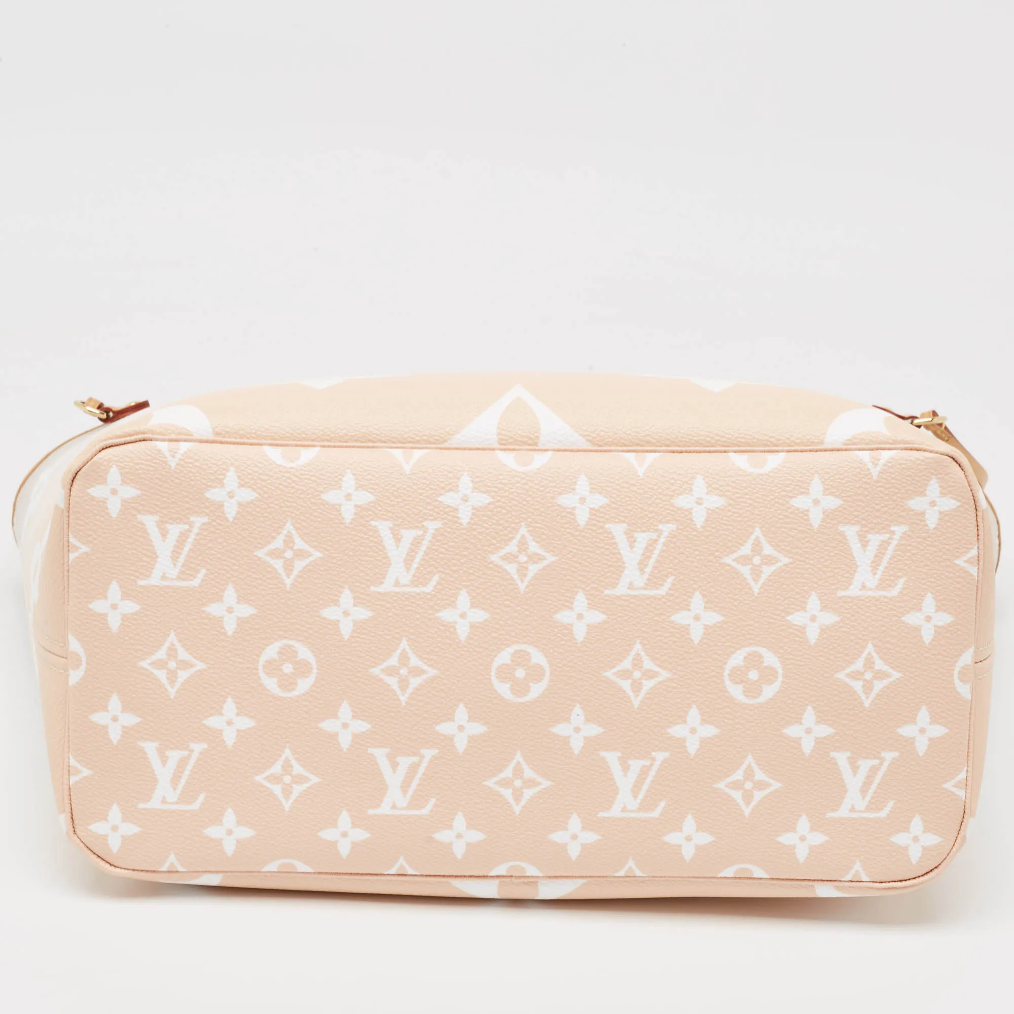 The Louis Vuitton Brume Monogram Giant Canvas By The Pool Neverfull bag captivates with its soft gradient hues and oversized monogram print. This spacious tote blends functionality with style perfect for any summery outing or chic daily wear embodying playful luxury and timeless appeal.