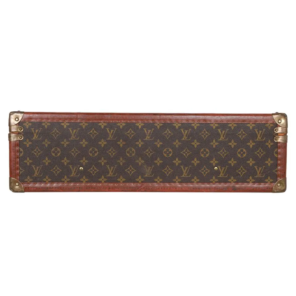 Authentic, pre-loved Louis Vuitton Bisten 60 monogram hard case trunk. Would make quite the statement piece in a home, office, business window, etc. Louis Vuitton Bisten trunk suitcase is featured in their signature monogram coated canvas with vachetta leather accents and a single top handle. The suitcase offers a Louis Vuitton "S" lock, reinforced with two trunk latches, golden brass rivet trim and corners, and is leather lined with two interior vertical straps. Designer size 60.