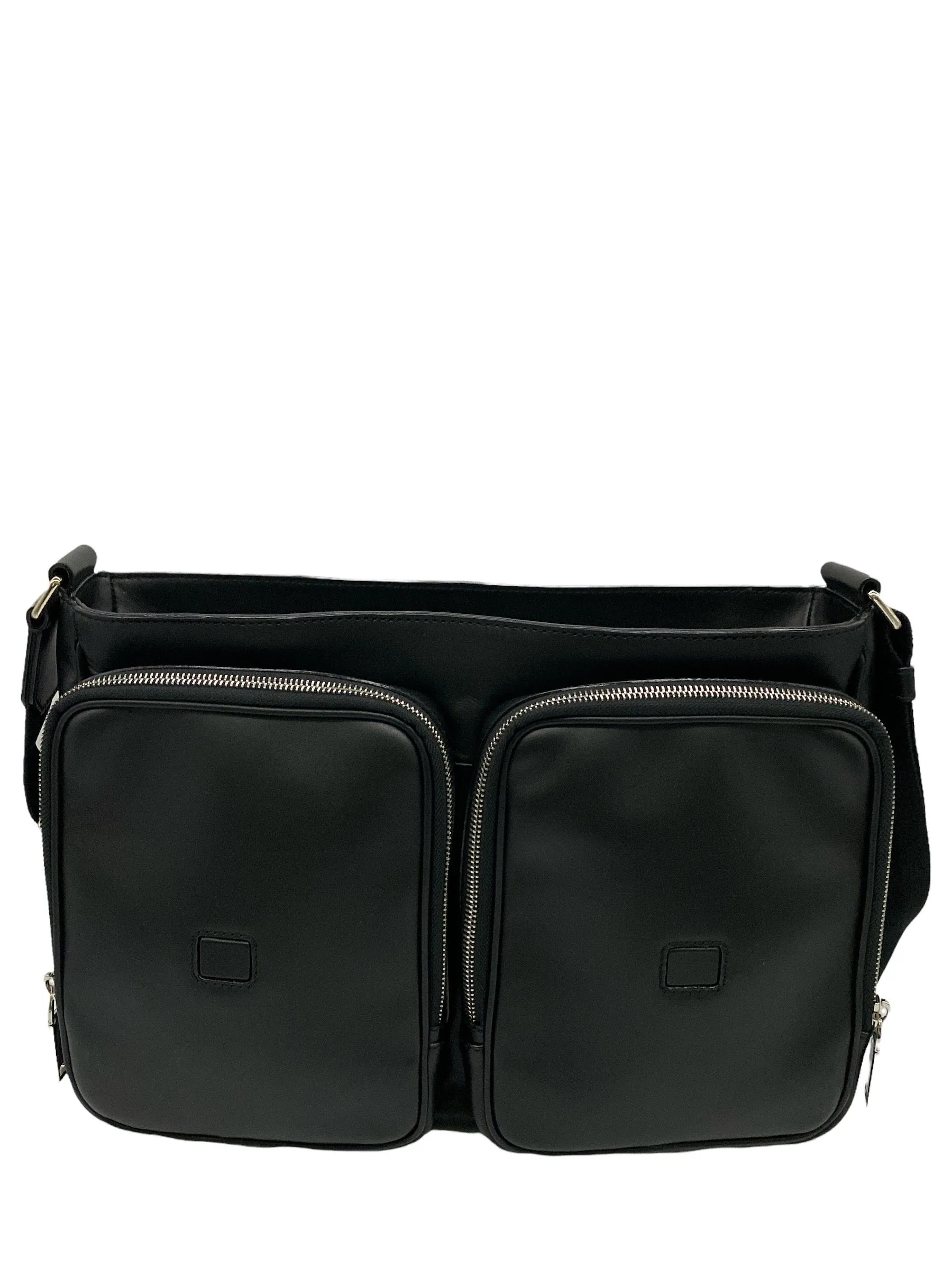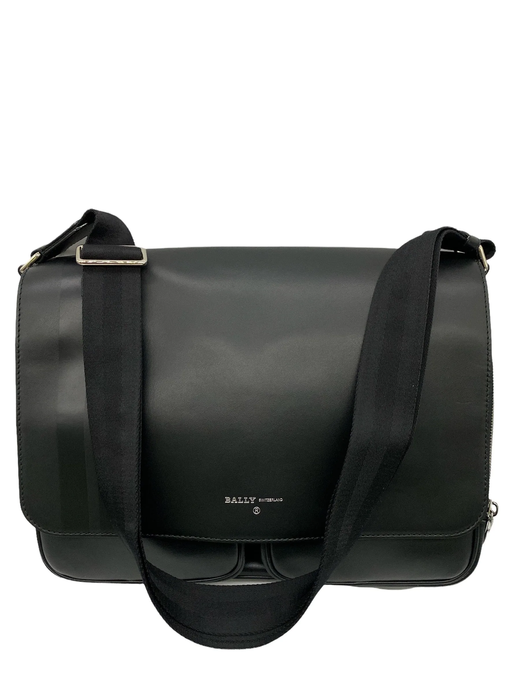 Bally Decker Men's Black Leather Cross Body Bag 6222748. Made from black leather the men's Decker messenger bag has a magnetic flap front closure featuring the Bally Stripe that reveals a lined interior.