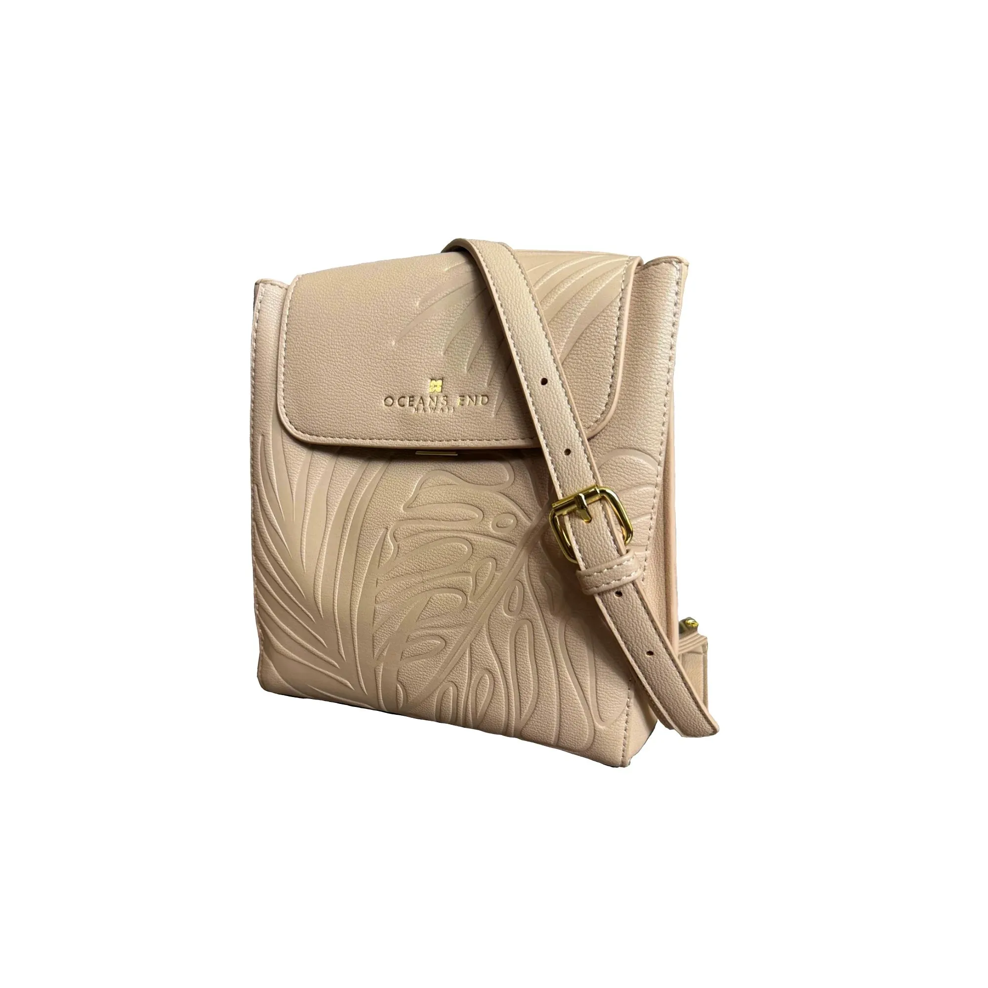 Elevate your fashion game with our Gabriela MINI Backpack Tote in bone. Designed with care in Hawaii and featuring luxurious embossing of Monstera and palm leaves, this effortlessly versatile and sophisticated accessory is perfect for the modern woman who seeks sustainability and style. With options for a backpack, shoulder bag, or crossbody style, this bag will complement your unique lifestyle and elevate any outfit. Indulge in the ultimate luxury and make it a must-have in your collection.