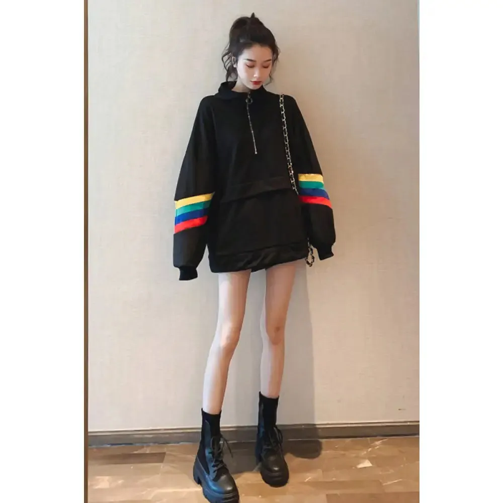 Rainbow Stand-Up Collar Loose Sweatshirt