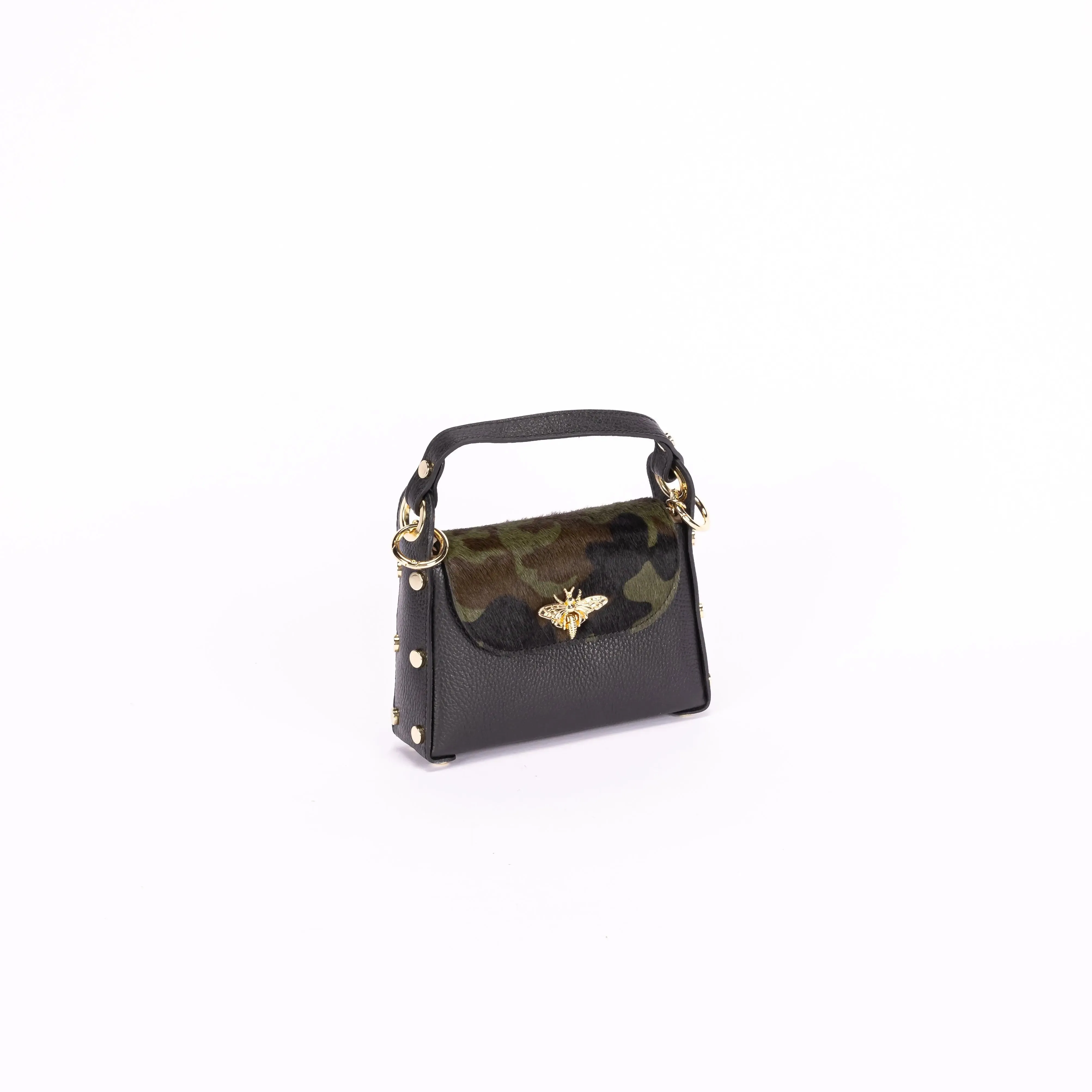 The Rita Bag is meticulously designed and crafted in Italy using high-quality calf leather and cowhide. The elegant colour and print combinations—black with camo print, black with leopard print, and brown with leopard print—offer a standout design perfect for any occasion.