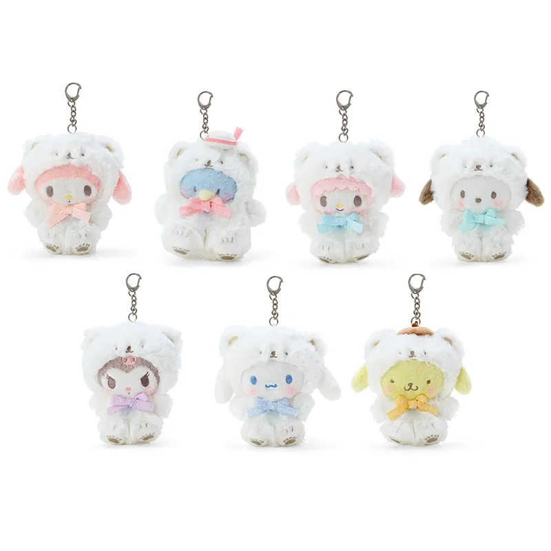 These precious Sanrio Snow mascots are made with a special fluffy fabric! Each one is styled with an adorable bow and a super cute snow bear costume. Be sure to add this chill Sanrio friends to kawaii-fy your backpack or ita bag!