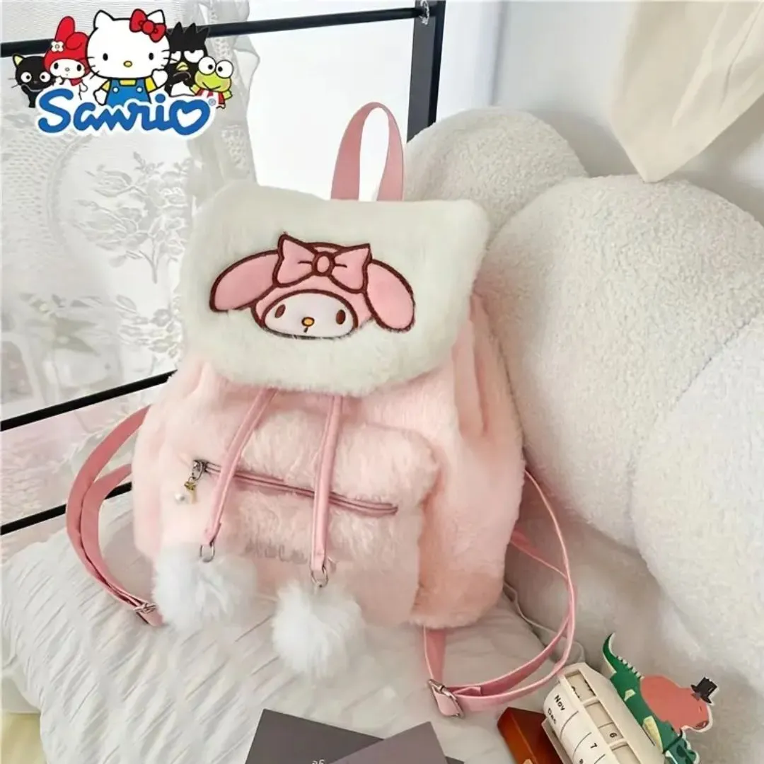 The Sanrio My Melody Pink Fluffy Backpack is a charming and whimsical accessory that perfectly captures the sweet and endearing nature of the My Melody character. Made from a soft, pink fluffy material, this backpack is both stylish and incredibly cuddly.