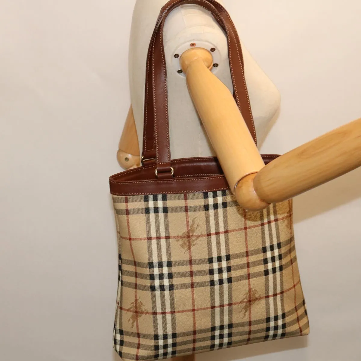 Trendy Inspired BURBERRYSs Nova Check Tote Bag PVC Beige Auth yk11163