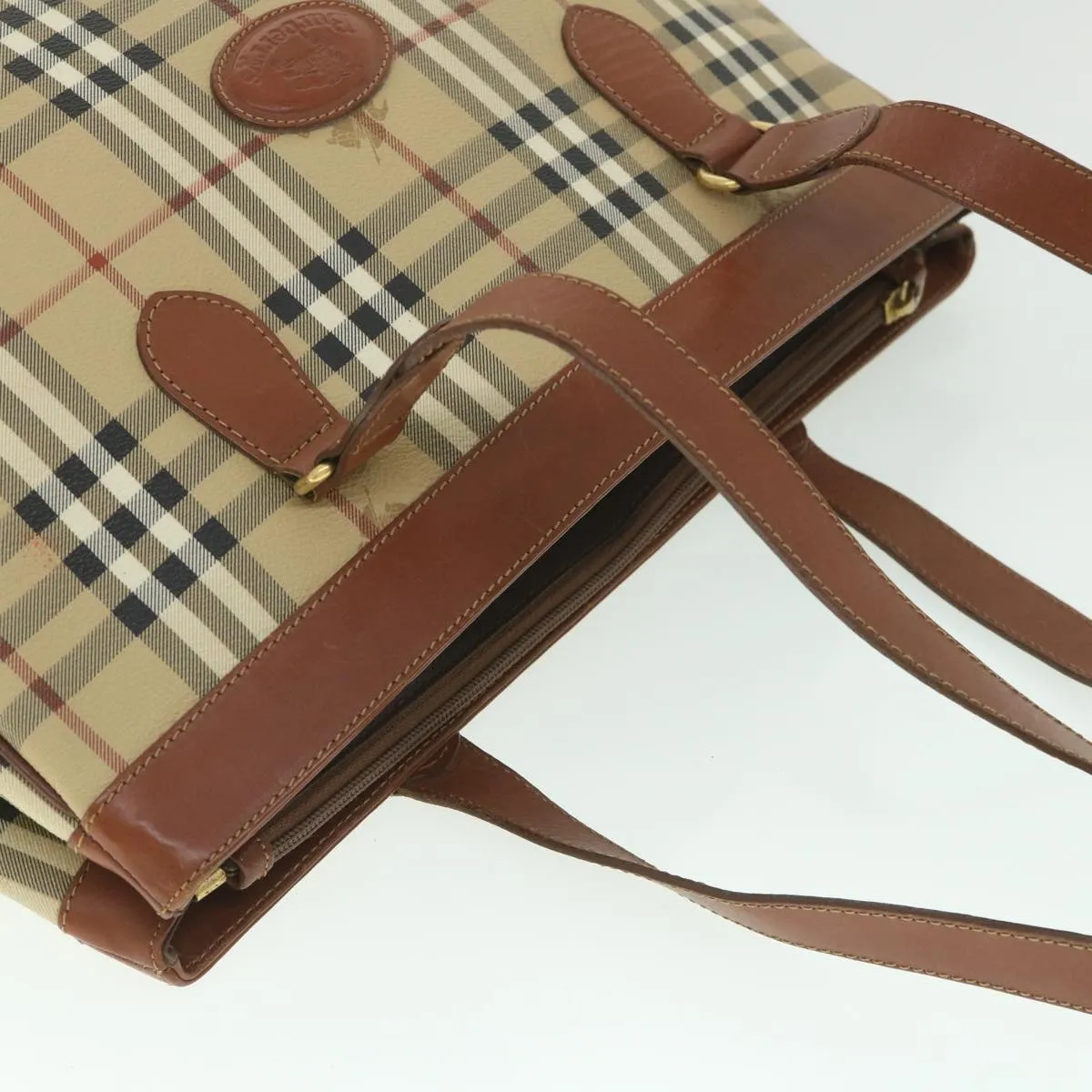 Trendy Inspired BURBERRYSs Nova Check Tote Bag PVC Leather Beige Auth ep1961