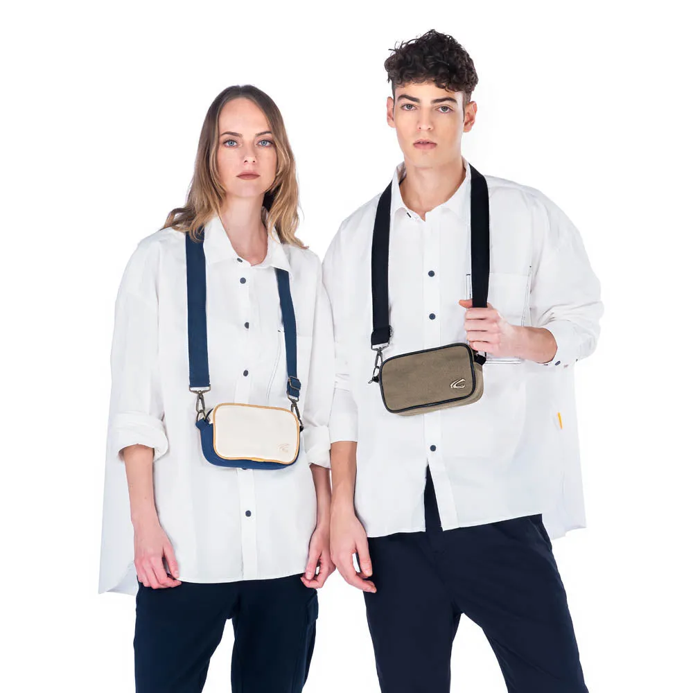 A mini and lightweight trendy camera bag made from canvas. Wear it on the neck or a crossbody, this bag will keep all your essentials with you. It is rectangular and is approximately 19cm in length, 11cm in height and 6cm in width. It has 1 main compartment internally which could hold approximately 1.2 liters and back card pocket externally. The bag is of zip closure and has no padded strap. Its webbing and outer materials and made of canvas while its inner lining material nylon. It has medium hardness and is on the small side. It is water resistant and is suitable for casual use.
