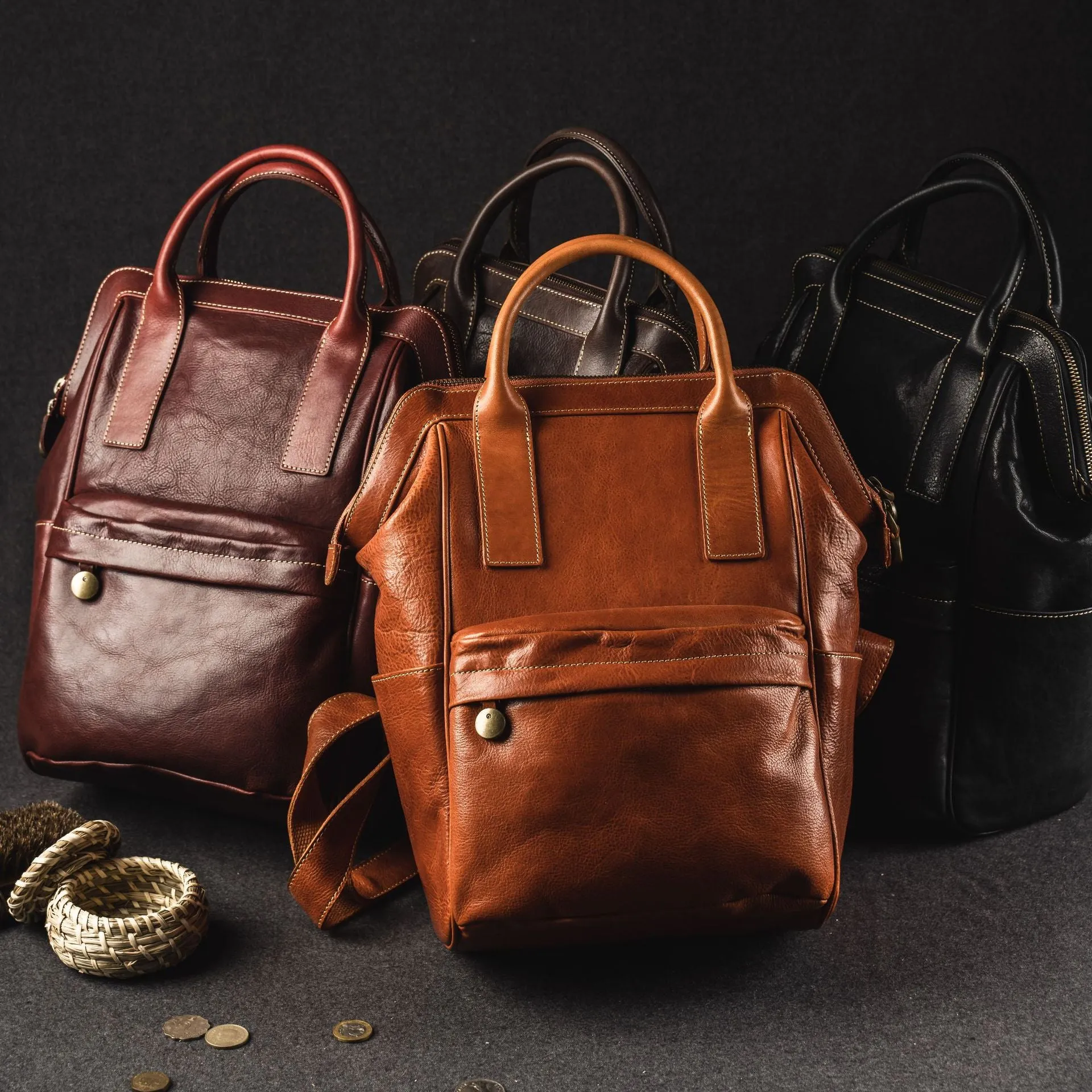 Unisex Male Female Vintage Vegetable Tanned Leather Travel Backpack Multi-functional Top-handle Bag Satchel Large Capacity Zipper Schoolbag handbags Tote;