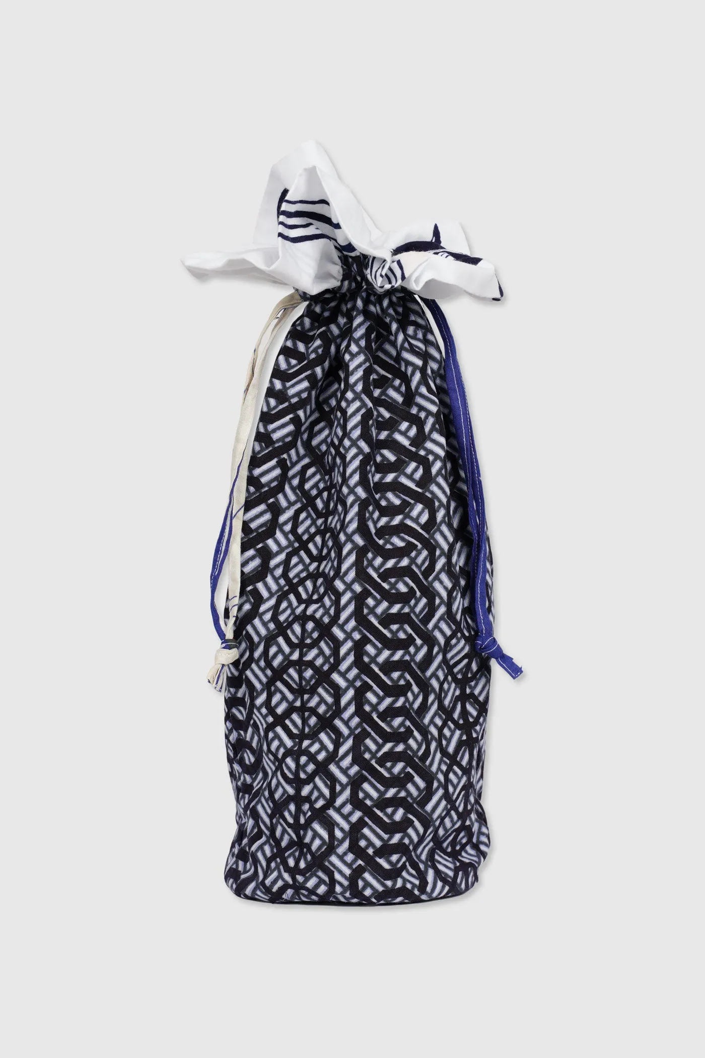 Made from Japanese contemporary and vintage yukata cotton, this reversible drawstring pouch features multiple prints and is designed to fit most regular-sized wine bottles. Ensure that you do not soak the pouch.